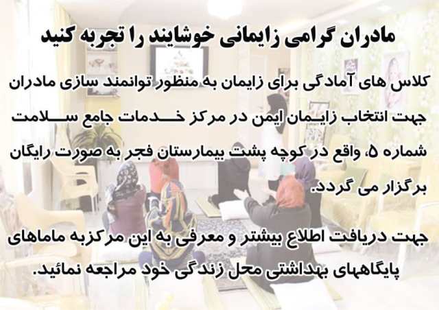 در کلاس های آمادگی برای زایمان شما در مورد ترس های دوران بارداری و زایمان با سایرین صحبت می کنید و راهکارهای لازم را پیدا می کنید.