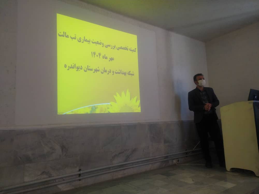 مسئول واحد بیماریها و کارشناس بیماریهای زئونوز مرکز بهداشت دیواندره، در ادامه ضمن اشاره به اهمیت بیماری تب مالت،به بررسی وضعیت این بیماری و میزان شیوع و بروز بر اساس متغیرهای مختلف در شهرستان دیواندره پرداختند و به ارائه گزارشی از اقدامات انجام گرفته در راستای پیشگیری و کنترل این بیماری توسط مرکز بهداشت دیواندره اشاره کردند.