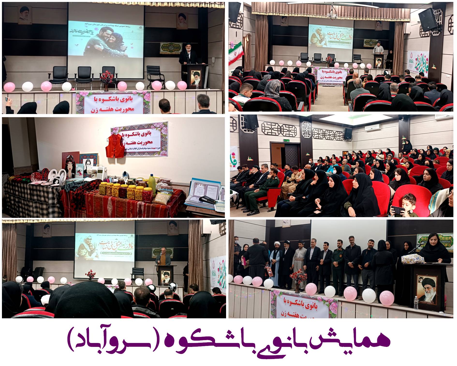 به مناسبت هفته زن، همایش «بانوی باشکوه» به همت واحد بهداشت خانواده و امور بانوان شبکه بهداشت و درمان شهرستان و امور بانوان فرمانداری و با مشارکت بسیج زنان سپاه پاسداران انقلاب اسلامی، مرکز بزرگ اسلامی، شهرداری، بهزیستی، اداره تبلیغات اسلامی و اداره فرهنگ و ارشاد اسلامی سروآباد در سالن تبلیغات اسلامی برگزار شد.