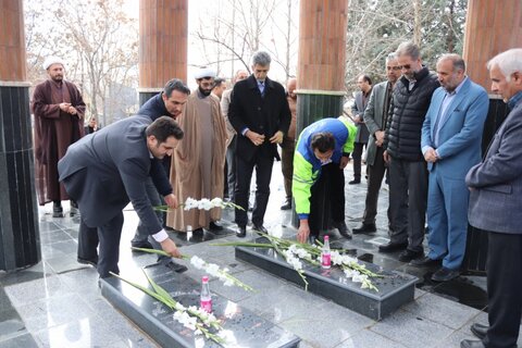 به گزارش روابط عمومی دانشگاه علوم پزشکی کردستان، در این آیین که به مناسبت آغاز دهه مبارک فجر(12 بهمن) برگزار شد، حاضرین با نثار فاتحه به ارواح مطهر شهدا و غبارروبی و عطرافشانی قبور مطهر آنان، بار دیگر با آرمان های امام راحل و انقلاب اسلامی ایران تجددید میثاق نمودند.