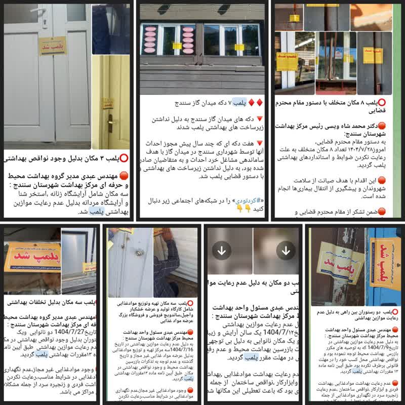 در راستای اجرای مستمر برنامههای نظارتی بر اماکن و واحدهای صنفی مرتبط با مواد غذایی و خدمات عمومی در سنندج، آمار تخلفات به تفکیک اعلام شد. از ابتدای مهرماه سال جاری، تعداد ۲۲ واحد و از ابتدای سال تاکنون، ۵۶ واحد صنفی متخلف در سطح شهر پلمب شدهاند.